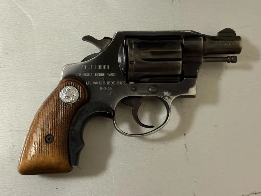 John H Quinn of the New York City Transit Police receiving the “highest metal award”, a .38 Colt Agent Revolver. He received this from the Sergeants Benevolent Association and the Lieutenant's Benevolent Association. This award was received in the late 1950s or early 1960s.